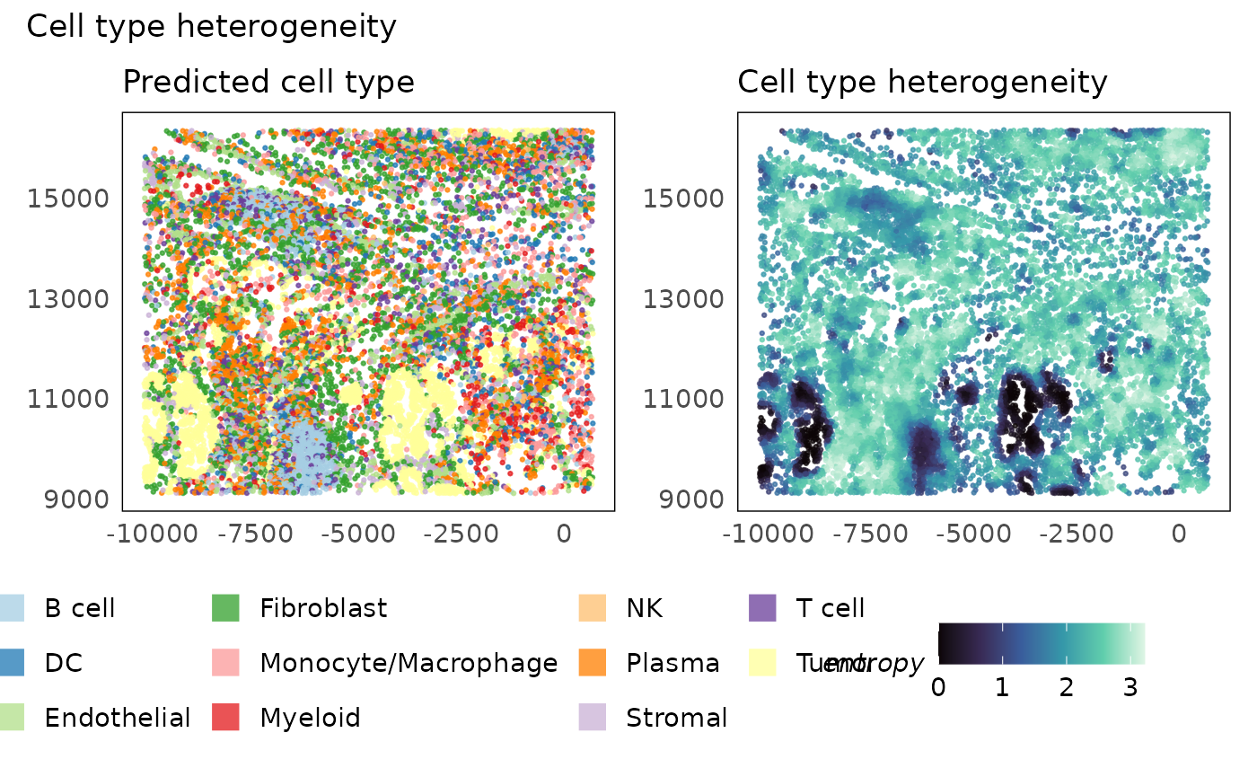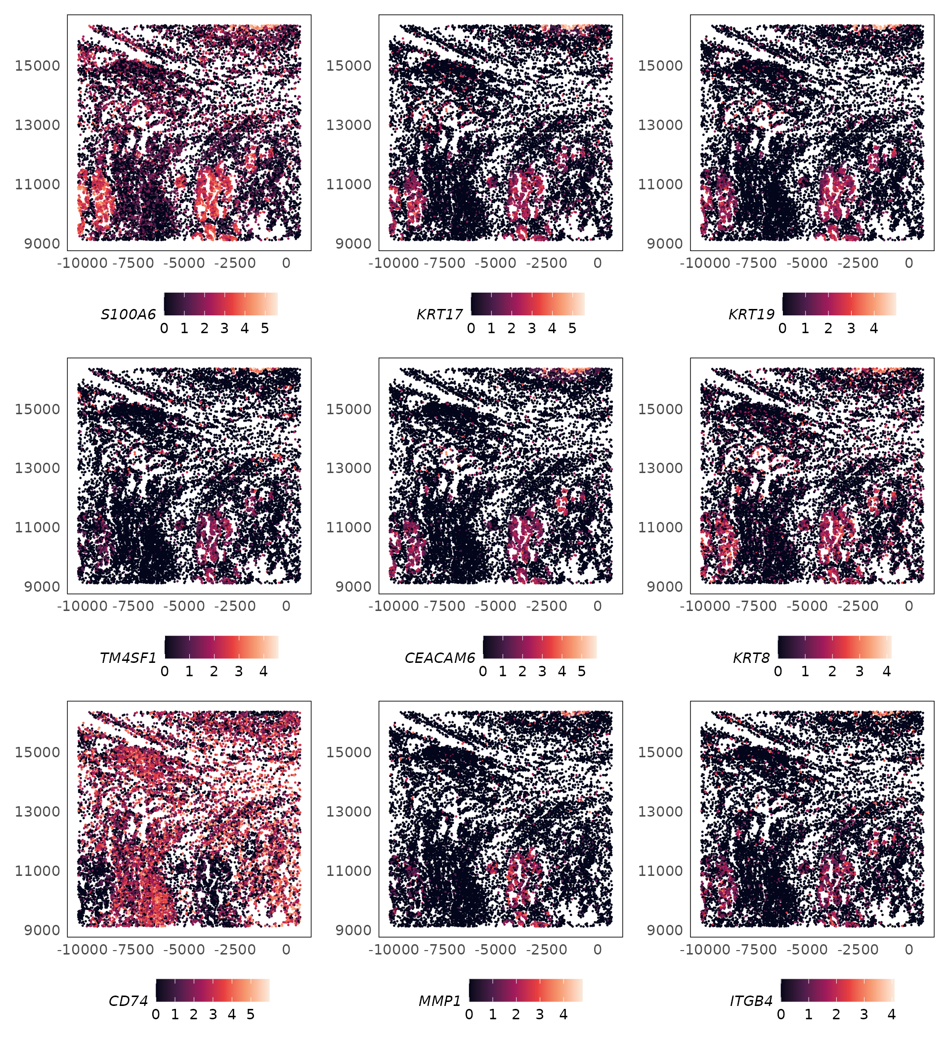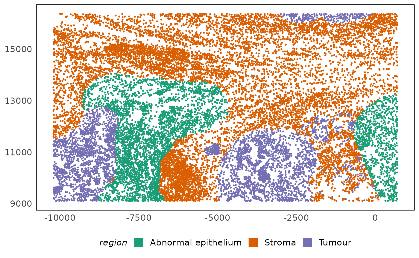 The example dataset used here was generated using the Bruker/NanoString CosMx SMI platform that measured 960 genes. More recent versions of this platform provide whole transcriptome measurements (>20k genes). It is relatively easy to scan through the strongest differentially expressed genes from a list of at most 960 genes to understand the processes underpinning the system. With larger panel sizes, we need computational tools to perform such analyses, often referred to as gene-set enrichment analysis or functional analysis. As this is an extensive topic, it is not covered in depth in this workshop, however, we have previously developed a workshop on gene-set enrichment analysis and refer the attendees to that if they are interested. A web-based interface of some of the tools in our workshop can be accessed through vissE.cloud.