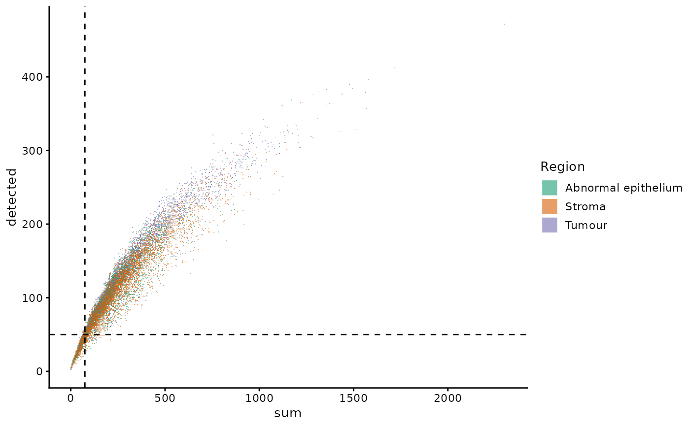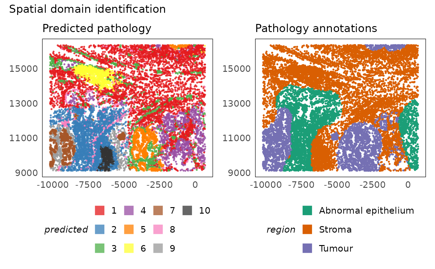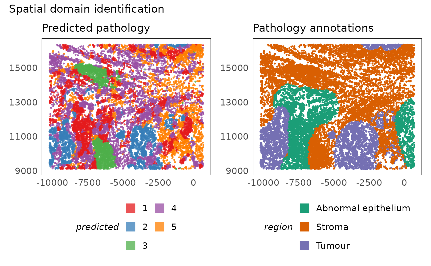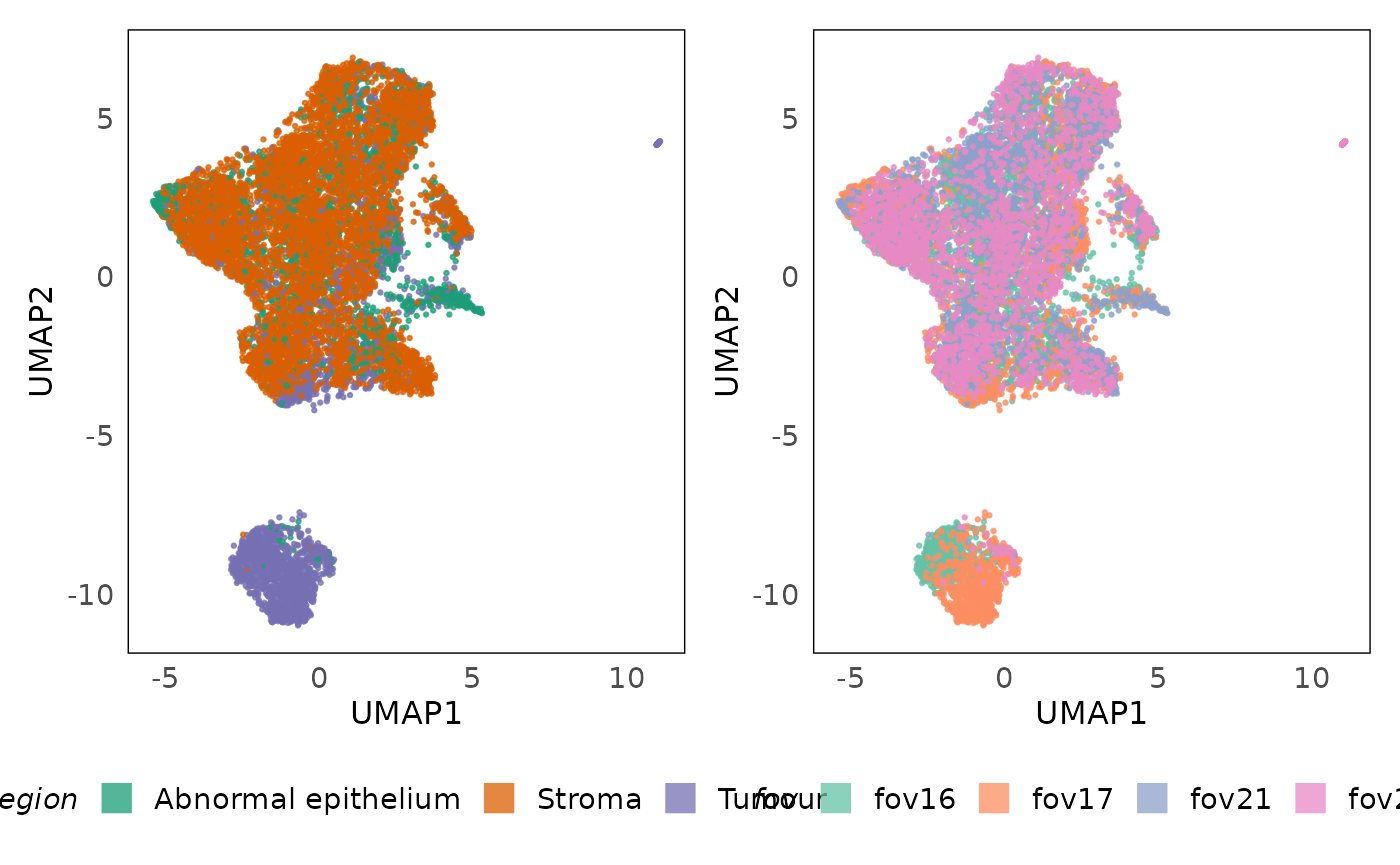 The example dataset used here was generated using the Bruker/NanoString CosMx SMI platform that measured 960 genes. More recent versions of this platform provide whole transcriptome measurements (>20k genes). It is relatively easy to scan through the strongest differentially expressed genes from a list of at most 960 genes to understand the processes underpinning the system. With larger panel sizes, we need computational tools to perform such analyses, often referred to as gene-set enrichment analysis or functional analysis. As this is an extensive topic, it is not covered in depth in this workshop, however, we have previously developed a workshop on gene-set enrichment analysis and refer the attendees to that if they are interested. A web-based interface of some of the tools in our workshop can be accessed through vissE.cloud.